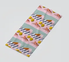 Un allegro motivo costiero con vivaci aragoste e conchiglie disposte in una semplice ripetizione all-over. Fresco, balneare e un po' preppy. Perfetto per portare le vibrazioni estive e il fascino del mare nella vita di tutti i giorni.
