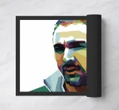 Coco in stile WPAP è un ritratto geometrico audace e colorato del famoso calciatore francese. Utilizzando tinte vivaci e forme spigolose, l'opera d'arte WPAP (Wedha's Pop Art Portrait) cattura la calma determinazione e il look iconico di Coco, riflettendo la sua eleganza, forza e abilità sul campo da calcio.