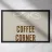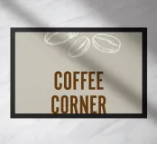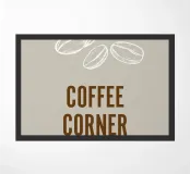 Sotto i chicchi di caffè, la scritta "COFFEE CORNER" (angolo del caffè) è evidenziata da una serie di leitters marroni.