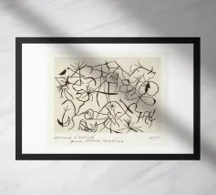 Joan Miró è stato un pittore, scultore e ceramista spagnolo nato a Barcellona nel 1893. Noto per il suo stile giocoso e fantasioso, Miró fondeva elementi del surrealismo, del dadaismo e dell'arte astratta. Le sue opere sono spesso caratterizzate da colori audaci, forme organiche e immagini oniriche che riflettono una profonda connessione con il subconscio. L'arte di Miró sfidava le tecniche tradizionali e ha ispirato intere generazioni con il suo senso di libertà e creatività. È considerato uno degli artisti più influenti del XX secolo.