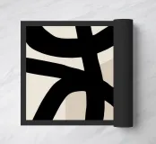 Una potente rete di linee nere che si piegano e si intersecano, come flussi di pensiero contrastanti su uno sfondo neutro. La composizione ricorda l'astrazione gestuale, con echi di Franz Kline e dell'arte dell'inchiostro giapponese. Nonostante l'austerità della tavolozza dei colori, si sviluppa una dinamica espressiva. Un'opera che trae tensione dalla riduzione e carica lo spazio di pura energia visiva. Anche su tessuti.