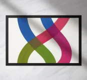 Tre forme dai colori vivaci in rosa, blu e verde si intrecciano elegantemente in un movimento apparentemente senza fine. Questo poster moderno combina energia e armonia in una sovrapposizione trasparente. La composizione ha un effetto dinamico ed equilibrato, ideale per gli spazi creativi, gli amanti del design e gli interni a colori ridotti con aspirazioni moderne.