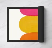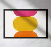 Tre aree ovali di colore rosa, giallo e arancione formano una composizione calma ed equilibrata. Il poster moderno ha un aspetto amichevole, leggero e strutturato allo stesso tempo - perfetto per gli interni con un linguaggio di design chiaro e un effetto cromatico positivo. Ideale per gli studi creativi, i soggiorni o come elemento di spicco in ambienti minimalisti.