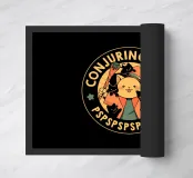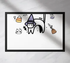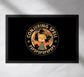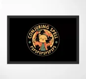 Un francobollo con un gattino mago circondato da diversi gattini neri, con la frase "Incantesimo di evocazione: PSPSPSPS". Questa affascinante illustrazione è perfetta da regalare a chi ama la magia e vede i gatti come creature magiche.