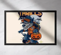 Una patatina fritta vampiresca a forma di cartone animato si erge minacciosa, con un mantello che si allunga, circondata da pacchetti di ketchup spaventati e da un'inquietante foresta notturna. Questa divertente parodia horror mostra il Conte Snacula, un cattivo croccante assetato di ketchup invece che di sangue. Perfetto per gli appassionati di food art eccentrica, per gli amanti di Halloween e per chiunque abbia un senso dell'umorismo dark.