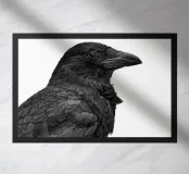 Questa stampa fotografica in bianco e nero mette in mostra i dettagli intricati delle piume e degli occhi penetranti del corvo. dedicata agli amanti degli uccelli e agli appassionati di arte ispirata alla natura, questa stampa unica del corvo aggiunge un tocco di raffinatezza e di intrigo al vostro spazio.