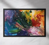 Un'esplosione di gialli radiosi, rossi infuocati, verdi profondi e blu notte che esplodono sulla tela come una supernova in piena fioritura. I tratti vorticosi e le texture schizzate catturano sia il caos che la meraviglia, riecheggiando la bellezza indomita del cosmo. Un'opera vibrante ed energica che irradia vita e movimento.