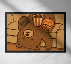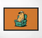 Illustrazione a fumetti di un personaggio a forma di patata con un berretto, comodamente sdraiato su una poltrona verde su un vivace sfondo arancione. La posa rilassata e i dettagli espressivi trasmettono umorismo e pigrizia in un disegno spensierato.