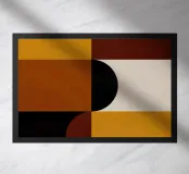 Questo pezzo di ispirazione Bauhaus unisce le calde tonalità del marrone e del senape con audaci forme geometriche per un'accogliente atmosfera da metà del secolo scorso. Perfetto per aggiungere un tocco di fascino retrò e di equilibrio moderno a qualsiasi spazio.