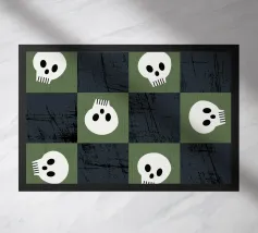 Diversi teschi sono appesi in una ragnatela di ragnatele e rami spinosi. La scena è in bianco e nero e appare oscura e misteriosa per la ricchezza dei dettagli. Un motivo a metà tra l'incubo e l'opera d'arte.