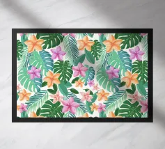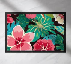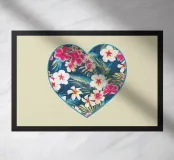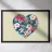 Hawaiian style Hibiscus Tropical pattern digitally created in heart shape. Magenta, Ivory, Blue, Green and Yellow tropical Vintage pattern.