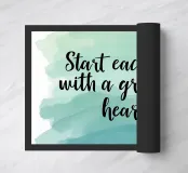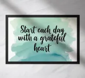 This beautiful design features the inspiring message "Start each day with a grateful heart" written in elegant calligraphy against a soft, watercolor background. It's a perfect reminder to focus on the positive and appreciate the good things in life.