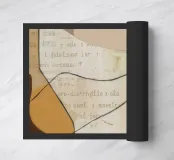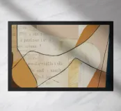 Quest'opera d'arte raffigura una composizione astratta con linee e forme curve, resa con colori tenui come il beige, il marrone e il blu. La composizione è aggraziata e fluida, evocando un senso di movimento ed eleganza.