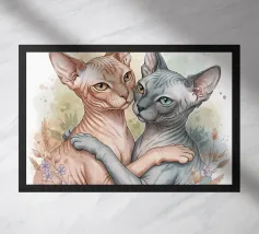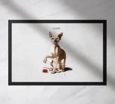 Un'illustrazione comica delle stranezze della pronuncia. Alcuni dicono Cut, altri dicono Cat, e tutto dipende dal divario tra nord e sud. Qui abbiamo il più peloso dei gatti, il Maine Coon, e il gatto meno peloso, il gatto sfinge, che si scontrano sul modo in cui la loro specie viene scambiata per il taglio delle forbici.