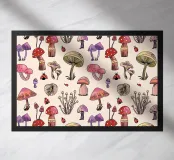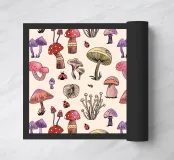 Motivo di funghi nei toni del rosso e della terra