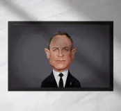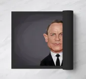 Illustrazione caricaturale umoristica del noto attore inglese Daniel Craig. Una delle caricature realizzate per la serie Celebrity Sunday, in cui un personaggio famoso viene ritratto nell'arco di una giornata. L'idea è di mostrarli come in una fototessera per avere coerenza.