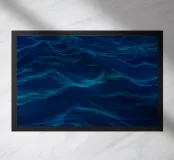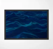 Arte digitale astratta. Onde oceaniche scure e vorticose di acqua agitata in tonalità marine profonde.