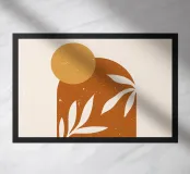 Questo motivo boho minimalista mostra un caldo sole serale su onde stilizzate, completato da delicati elementi a foglia. I toni terrosi dell'arancione e il blu tenue creano un disegno armonioso che irradia calma e naturalezza. Perfetto come murale, cuscino o tazza, questo disegno aggiunge un tocco artistico e moderno a qualsiasi ambiente. Portate calore e stile nella vostra casa con questo accento decorativo senza tempo.