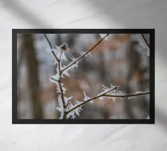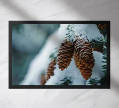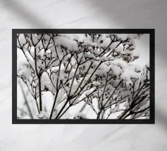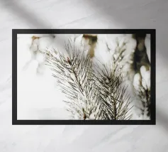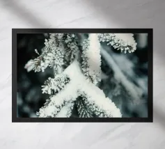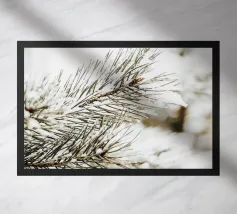 Questo suggestivo motivo mostra rami di abete in filigrana ricoperti da un delicato strato di neve e brina. I dettagli naturali e le calde sfumature di colore dei rami creano un'estetica invernale armoniosa e rilassante. Perfetto come murale, tazza, custodia per cellulare o cuscino, questo disegno porta in ogni casa la tranquilla eleganza delle giornate invernali innevate e la bellezza della natura. Ideale per gli amanti della fotografia naturalistica moderna e dell'arte invernale minimalista.