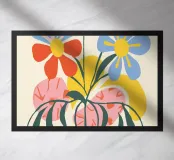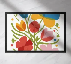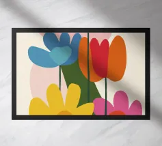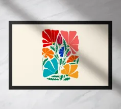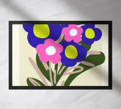 Questo vivace disegno floreale combina colori vivaci e forme moderne: Fiori rossi e blu con un centro giallo solare su un allegro sfondo rosa e giallo. Un motivo fresco ed elegante che unisce il fascino retrò degli anni '70 alla chiarezza scandinava. Perfetto come murale, tazza, cuscino o cover per cellulare, per gli amanti dei motivi floreali colorati, delle decorazioni di metà secolo e degli accessori moderni per la casa. Un richiamo ideale per il soggiorno, la camera da letto o l'ufficio e un regalo affascinante per gli amanti dell'arte e dei fiori.