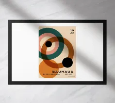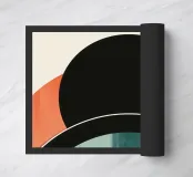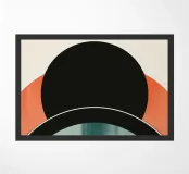 Questo design artistico combina il nero deciso e i toni della terra con le vibranti sfumature del blu e dell'arancione. Le forme geometriche chiare e gli archi creano un fascino moderno e retrò e si adattano perfettamente agli spazi scandinavi o minimalisti. Come murale, cuscino o poster, il motivo crea un accento elegante e aggiunge carattere e calore agli ambienti. Un elemento decorativo unico per gli amanti del design e dell'arte che apprezzano l'estetica moderna.