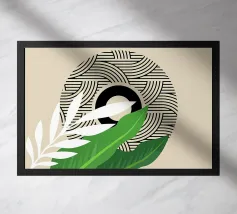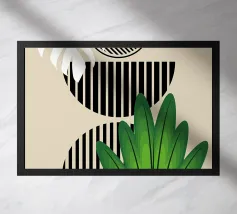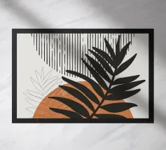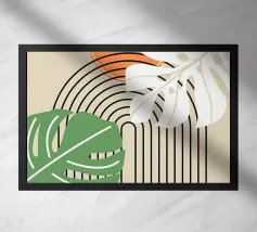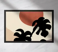 Un design artistico con foglie di monstera minimaliste in contrasto bianco e nero, abbinate a un caldo semicerchio in terracotta. L'armoniosa fusione di forme naturali e linee moderne fa di questo motivo il pezzo forte di ogni casa. La palette di colori ridotta e gli elementi grafici creano un look contemporaneo ed elegante. Perfetto per opere d'arte da parete, cuscini, tazze o cover per cellulari. Questo disegno conferisce un tocco boho chic e botanico al vostro spazio abitativo o lavorativo ed è ideale anche come regalo per gli amanti della natura e del design.