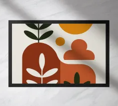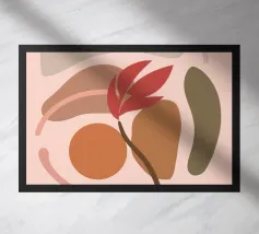 Quest'opera d'arte presenta una miscela di forme astratte in toni caldi, incorporando forme e texture naturali. Evoca un senso di calma e creatività, perfetto per gli spazi contemporanei.