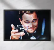"Leonardo DiCaprio in smoking, con un bicchiere di vino in mano e un sorriso sicuro, su uno sfondo scuro con sopra il testo 'la gente ti giudicherà, e allora? fallo lo stesso', che cattura uno stato d'animo di sfida e di celebrazione",