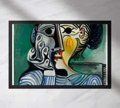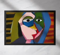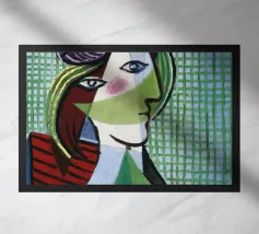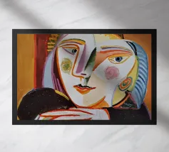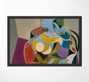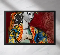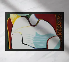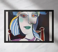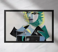 Immergetevi nella complessa bellezza di questo poster digitale, un vibrante omaggio ai capolavori cubisti di Picasso. L'opera d'arte ritrae una donna seduta, ornata da un caratteristico cappello a righe, resa con tratti frammentati e prospettive multiple. La sua pelle dai toni blu contrasta con i gialli, i rossi e i viola caldi dei suoi abiti a fantasia e dello sfondo, creando un arazzo visivamente ricco. Questo poster digitale di qualità superiore, che vanta 7000x5000 pixel a 300 dpi, cattura in modo impeccabile i dettagli intricati e lo stile innovativo, rendendolo uno straordinario pezzo forte per qualsiasi collezione di arte moderna.
