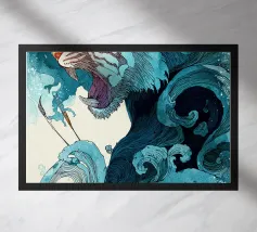 mostro drago in mezzo alle onde dell'oceano