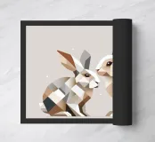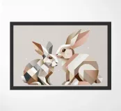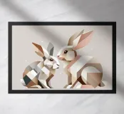 Due conigli dalle forme geometriche morbide e dai toni pacati della terra. La loro rappresentazione in diverse tonalitร  di marrone aggiunge un tocco giocoso ed elegante. Un'opera d'arte perfetta che incarna l'umore della primavera e la gioia della stagione. Raffigurazione geometrica di due conigli Armoniose tonalitร  della terra in beige, marrone e bianco Ideale per temi primaverili e decorazioni pasquali Design moderno con un tocco minimalista Perfetto per gli amanti dell'arte che apprezzano le rappresentazioni creative di animali