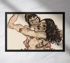 Realizzato nel 1913, Due donne che si abbracciano di Egon Schiele è un esempio straordinario di disegno espressionista del primo Novecento. Con una cruda intensità emotiva e un tratto minimalista, l'opera esplora l'intimità, la vulnerabilità e il legame umano. Una composizione audace e profondamente personale che rimane senza tempo nella sua profondità emotiva.