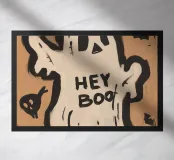 Un giocoso fantasma di Halloween circondato da pipistrelli.