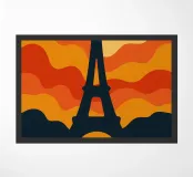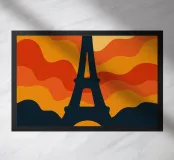 Immergetevi in un'atmosfera calda e poetica con questa vibrante illustrazione della Torre Eiffel al tramonto. Con le sue linee ondulate e le tonalità arancioni, questo poster trasforma l'iconico monumento in un'opera d'arte davvero retro-moderna. Perfetto per arricchire qualsiasi interno con un tocco parigino audace e di design.