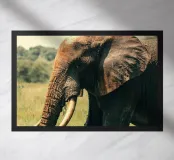 L'elefante ondeggia lentamente il suo corpo massiccio mentre pascola, tirando su ciuffi di erba verde fresca con la sua forte proboscide. I suoi occhi dolci e i suoi movimenti calmi riflettono una forza tranquilla, mentre il ritmo del suo nutrimento riecheggia la pacifica armonia della natura selvaggia".