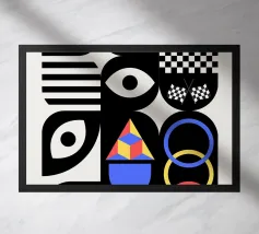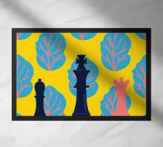 L'illustrazione "Emoticons and Chess" presenta un design unico e creativo che combina elementi di emoticon (emoji) con il gioco degli scacchi.