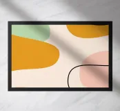 Estetica stampa astratta caratterizzata da morbide forme organiche nei caldi toni della terra con una giocosa linea nera. Perfetta per aggiungere un'atmosfera moderna e rilassata a qualsiasi spazio. Un mix trendy di minimalismo e flusso artistico!