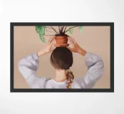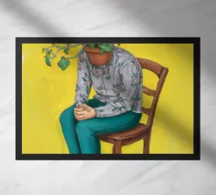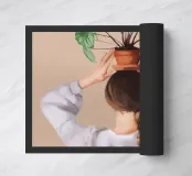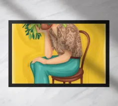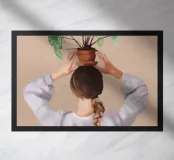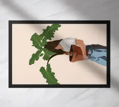 Un ritratto affascinante e dai toni tenui di una donna che tiene in equilibrio una pianta in vaso sulla testa, vista da dietro. Con la sua treccia infilata sotto un maglione accogliente e su uno sfondo neutro e caldo, questa illustrazione celebra l'armonia, la consapevolezza e un tocco di estrosità quotidiana. Un'opera d'arte da parete perfetta per gli amanti delle piante, per gli spazi dedicati allo yoga o per gli interni calmi e creativi.