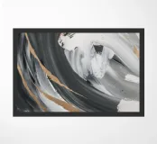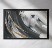 Un'opera d'arte astratta dinamica dominata da ampie pennellate di grigi e bianchi, che creano un potente movimento vorticoso. La tavolozza monocromatica enfatizza la texture e il flusso energetico della composizione.