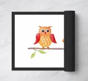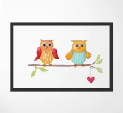 Simpatici gufi dipinti ad acquerello su un ramo con un cuore allegato.