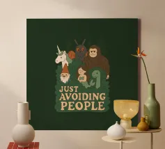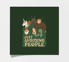 Un unicorno, Bigfoot, una sirena e altre creature leggendarie fanno capolino timidamente dalla foresta. Esistono davvero, sono solo introversi che evitano l'interazione sociale. Ideale per tutti coloro che amano i criptidi, le creature magiche e la dolce gioia di essere lasciati soli.