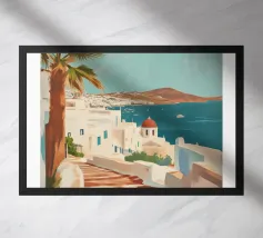 Tra le mura storiche di Santorini, in Grecia, uno sguardo intenso attira l'attenzione: un murale artistico di una donna i cui occhi sembrano guardare dritto nell'anima. Sullo sfondo si ergono la cupola e il campanile di una tipica chiesa greco-ortodossa. L'interazione tra street art e architettura storica racconta i contrasti, l'identità e l'espressività di questa affascinante isola.
