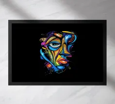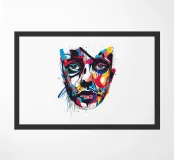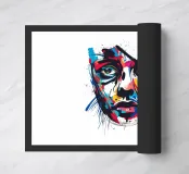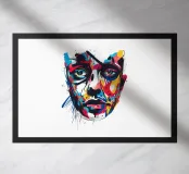 Vivida illustrazione astratta di un volto umano resa con pennellate audaci e vibranti spruzzi di rosso, blu, giallo e nero. I dettagli espressivi evocano emozioni e creatività, fondendo arte moderna e realismo.
