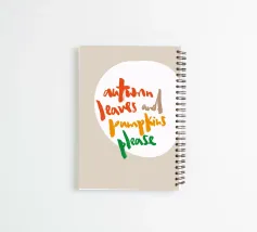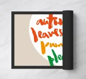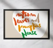Brush Lettering Motiv "Foglie d'autunno e zucche per favore" in knalligen Herbstfarben