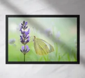 Farfalla bianca su lavanda in giardino