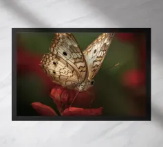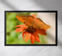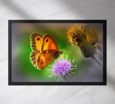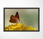 Farfalla Piccola farfalla di fuoco su un fiore giallo, ripresa macro