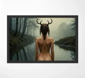 In questo momento, si fonde con l'ambiente circostante, un essere di un altro tempo che condivide la solitudine del lago. La sua presenza nel lago è una silenziosa poesia della natura che parla della connessione di tutte le cose. In questo ambiente immobile e nebbioso, il fauno trova una profonda pace interiore e la sua tristezza si trasforma in una dolce accettazione. È un tutt'uno con il lago, la nebbia e il mondo che la circonda.