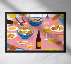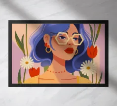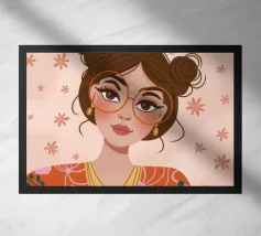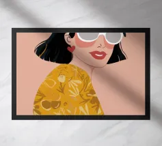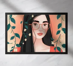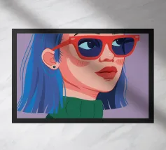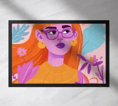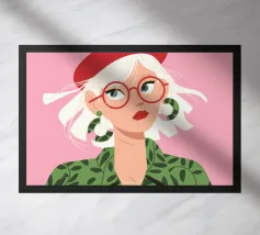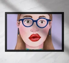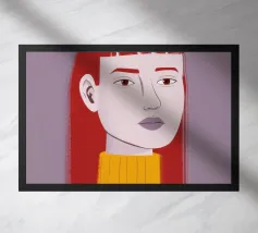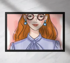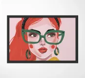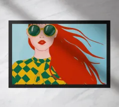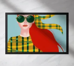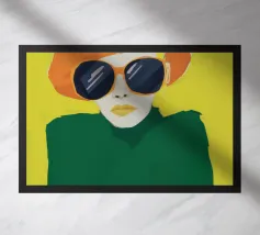 Questo vivace ritratto pop art presenta una rossa sicura di sé che indossa audaci occhiali verdi da gatta e un dolcevita giallo. Il mix di elementi retrò e moderni crea una divertente dichiarazione di intelligenza, stile e impavida individualità.