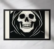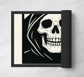 Stampa Final Destination, Poster cinematografico alternativo, Bianco e nero, Arte da parete minimale, Teschio, Morte, Mietitore, Volo, Imbarco, Regalo per fan del cinema