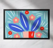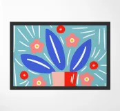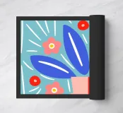 Ravvivate la vostra casa con questo moderno motivo floreale. Il vaso stilizzato in rosso e rosa, circondato da foglie blu e fiori delicati su uno sfondo azzurro, conferisce a questo disegno un aspetto grafico e contemporaneo. Ideale per decorazioni murali, cuscini, tazze, cover per cellulari e molto altro ancora. Questo motivo è perfetto per chi ama i disegni giocosi e colorati con un tocco di arte e modernità. Crea accenti vivaci e si adatta a un'ampia varietà di stili di interni.
